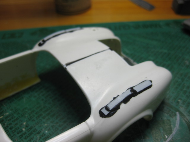 全体のバランスを見るために,ライト下のフェンダー部にプラバンを貼り延長