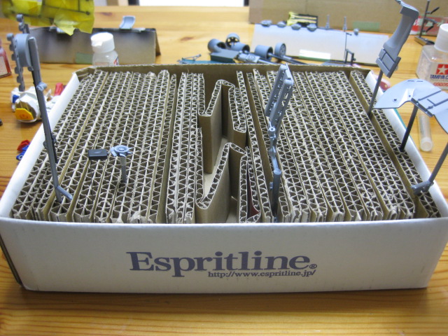 ここのダンボールの目が大きくてちょうどランナーが入ります