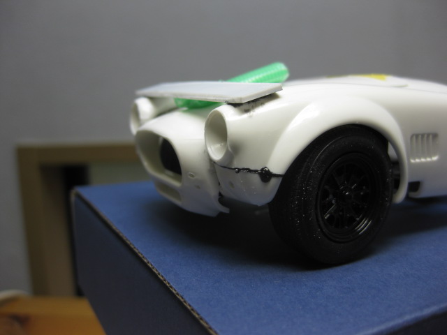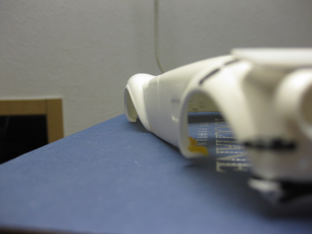 全体のバランスを見るために,ライト下のフェンダー部にプラバンを貼り延長