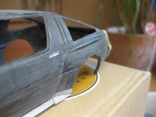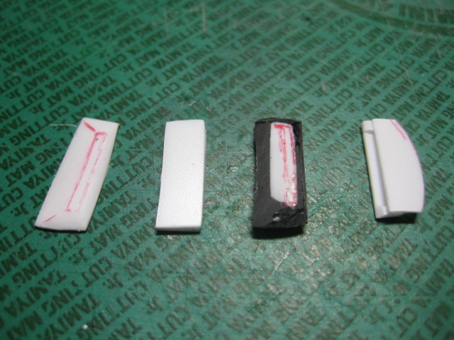 左からプラ板から形出せばいいじゃんと安易に考えたが,ボディのRに合わずボツ