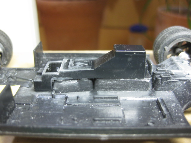 センターコンソールは,かなりいいかげんなのでプラ板でボロ隠しと,M/Tシフトレバーを表現してみた