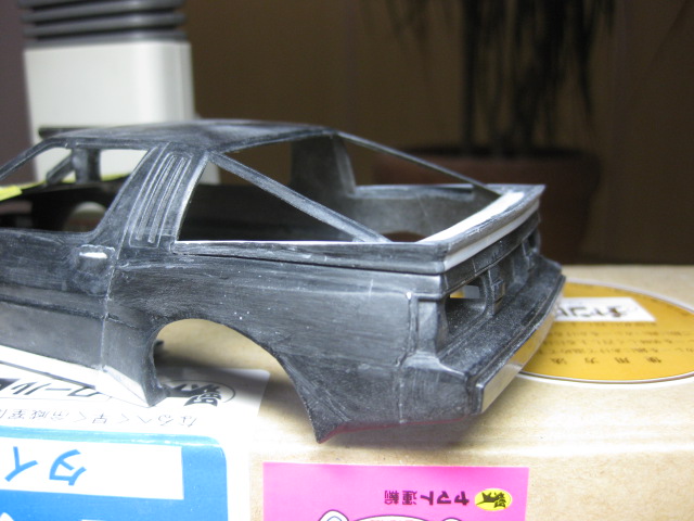 [PR] ×[PR]上記の広告は3ヶ月以上新規記事投稿のないブログに表示されています。新しい記事を書く事で広告が消えます。 Starion GSR-VR(5) 今日も猛暑で暑かった リヤスポイラーの製作を始めます こんな手順でやってますが,もっといい方法あれば知りたいなぁ マスキングテープを貼り,そこに黒瞬でプラバンを接着します 補強と天板の角度調整用にリブを立てます その上に天板を接着し マスキングテープごと剥がして,整形するとこんな感じ 両サイドも同じ手順で形を作って,今日の成果はこんなところ なかなか良い感じに出来たと自己満足 内側のRをもう少しやり直す予定です 外装の部品は,Bピラーのベンチレータ(?)のみとなりました サフ拭いてからの表面処理は大変そうです PR コメント コメントを書く コメントを書く コメント送信